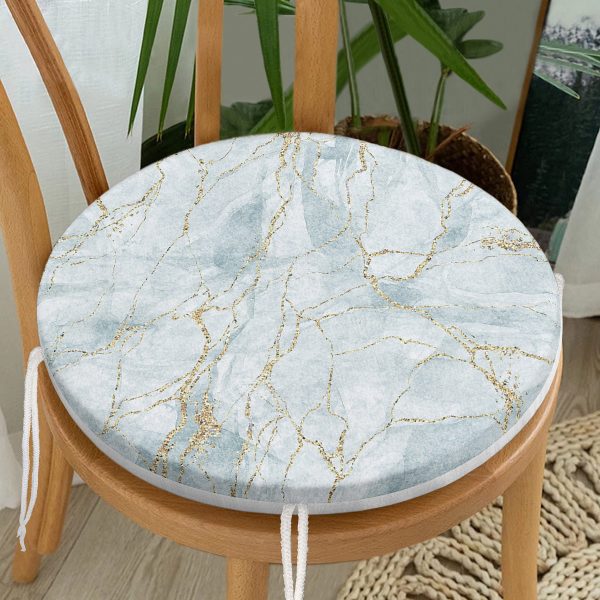 Altın Yaldızlı Mermer Desenli Dijital Baskılı Yuvarlak Fermuarlı Sandalye Minderi