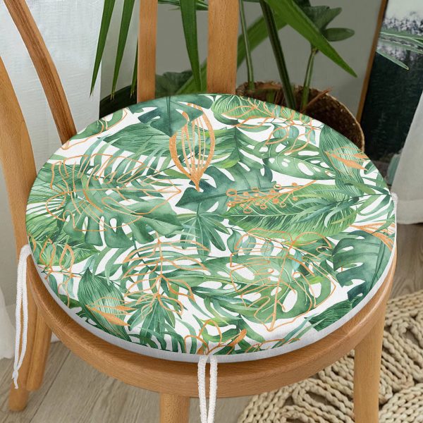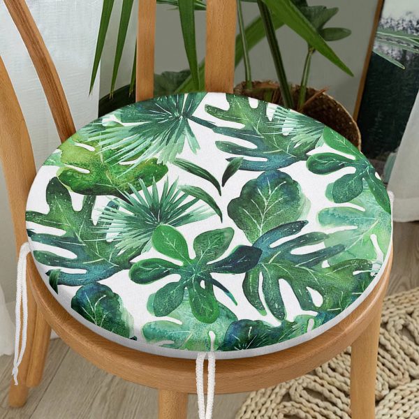 Amazon Yaprakları Dijital Baskılı Modern Yuvarlak Fermuarlı Sandalye Minderi