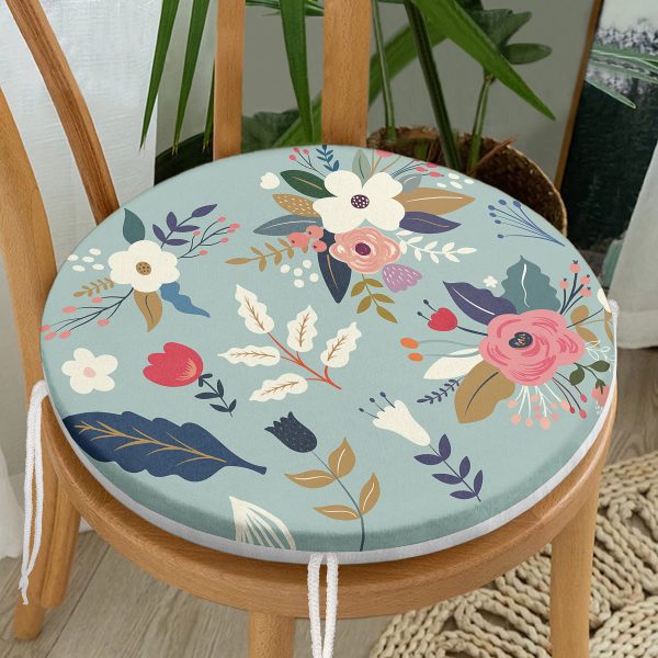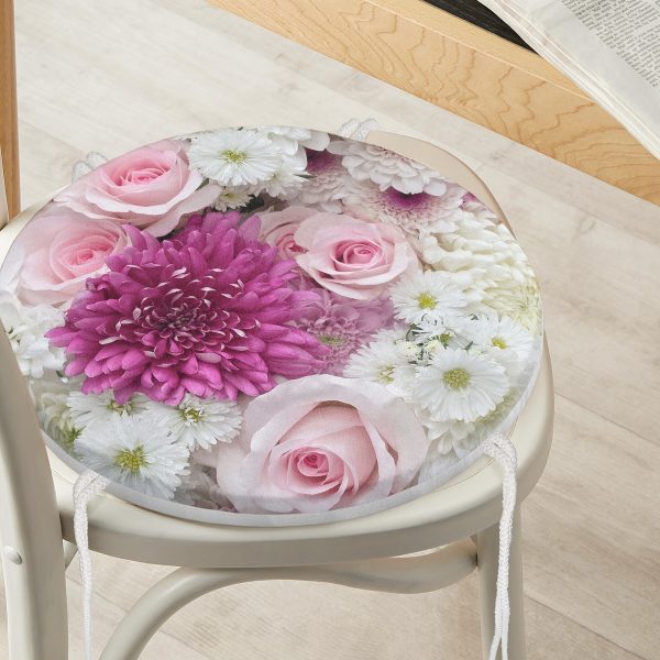 Çiçek Demeti Dijital Baskılı Yuvarlak Fermuarlı Sandalye Minderi