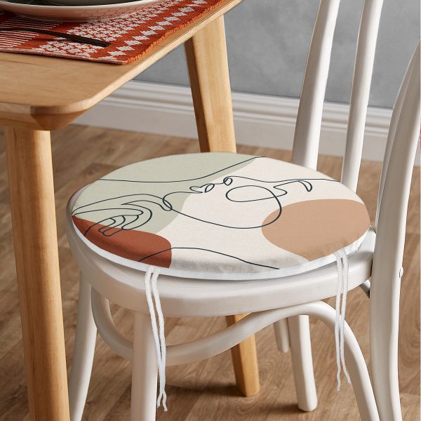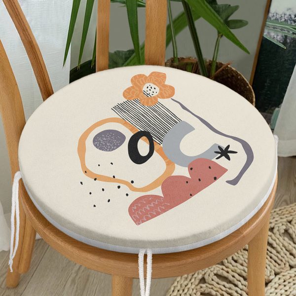 Sanatsal Motifli Çiçek Detaylı Dijital Baskılı Modern Yuvarlak Fermuarlı Sandalye Minderi
