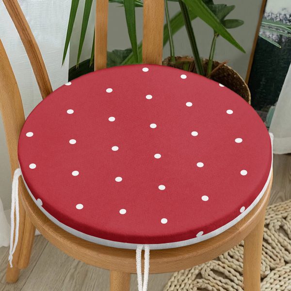 Renkli Zemin Üzerinde Beyaz Puantiyeli Dijital Baskılı Modern Yuvarlak Fermuarlı Sandalye Minderi