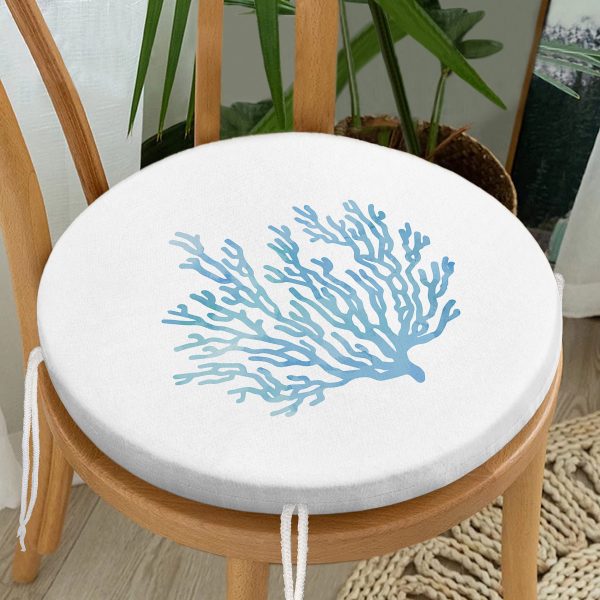 Beyaz Zemin Üzerinde Renkli Deniz Otu Desenli Dijital Baskılı Modern Yuvarlak Fermuarlı Sandalye Minderi