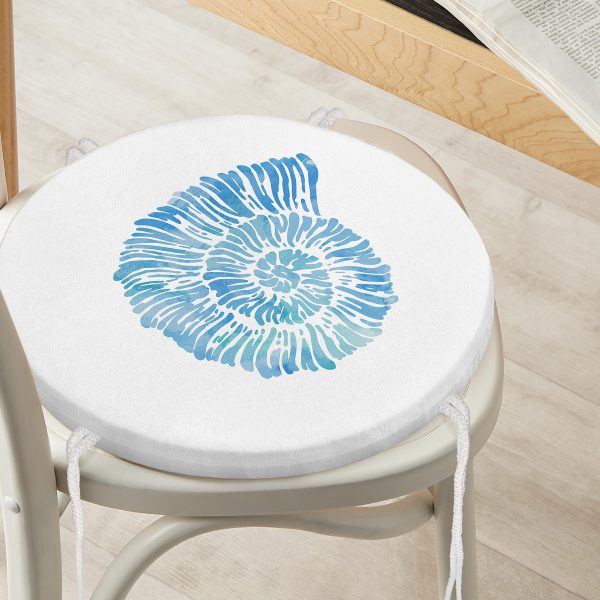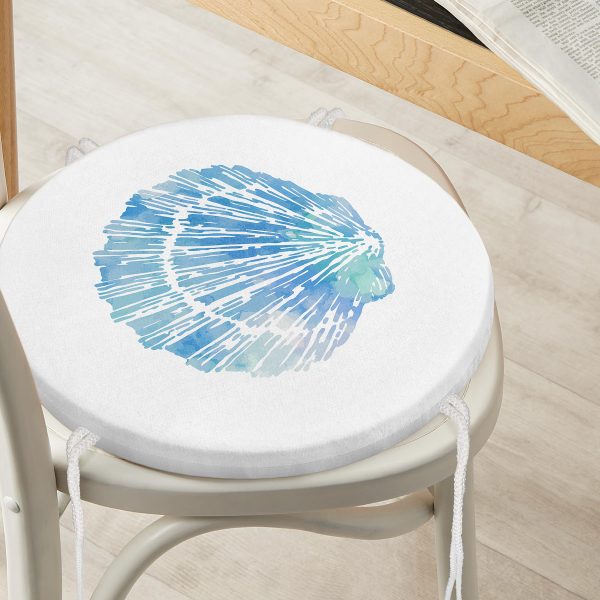 Beyaz Zemin Üzerinde Renkli Deniz Kabuğu Desenli Dijital Baskılı Modern Yuvarlak Fermuarlı Sandalye Minderi