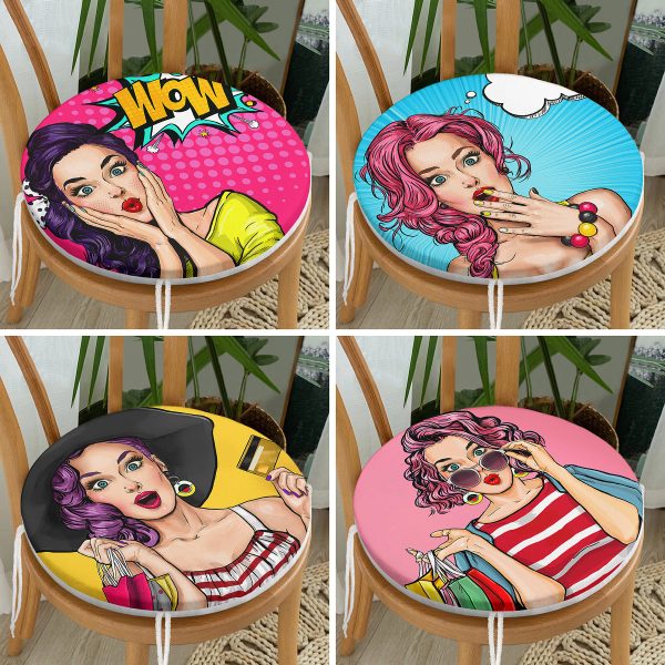 4’lü Fashion Girl Konseptli Yuvarlak Fermuarlı Sandalye Minderi Seti