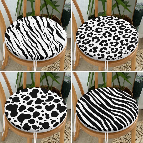 4’lü Beyaz Zemin Üzerinde Zebra Desenli Modern Yuvarlak Fermuarlı Sandalye Minderi Seti