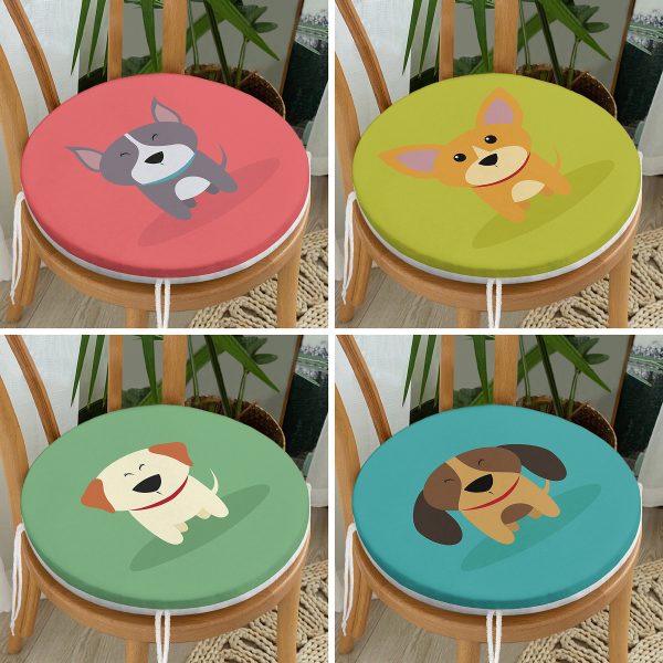 4’lü Sevimli Köpekcikler Yuvarlak Fermuarlı Sandalye Minderi Seti