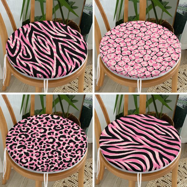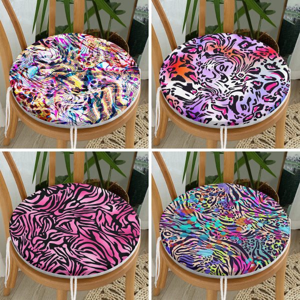 4’lü Renkli Leopar Desenli Yuvarlak Fermuarlı Sandalye Minderi Seti