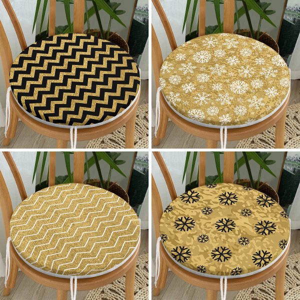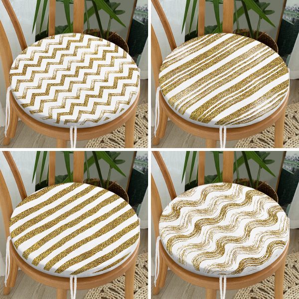 4’lü Özel Gold Tasarımlı Dijital Baskılı Modern Yuvarlak Fermuarlı Sandalye Minderi Seti