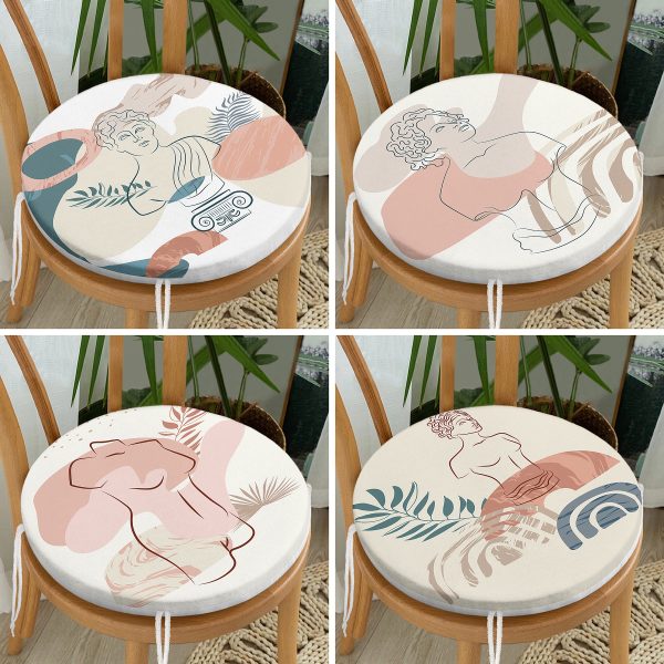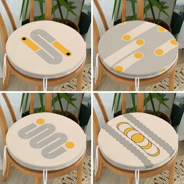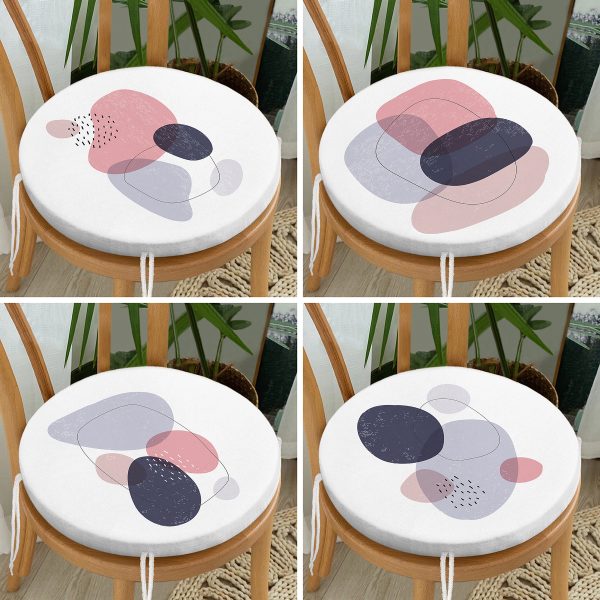 4’lü Renkli Zemin Üzerinde Onedraw Çizimli Modern Yuvarlak Fermuarlı Sandalye Minderi Seti