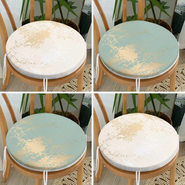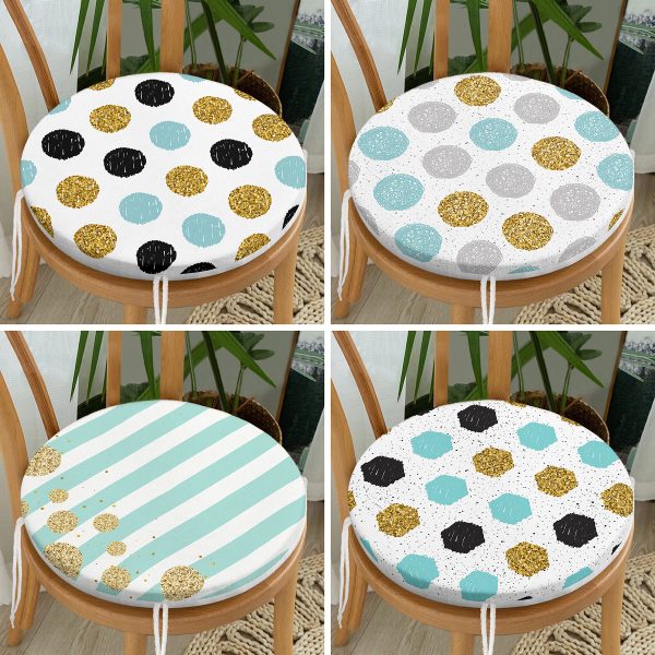 4’lü Renkli Zemin Üzerinde Gold Detaylı Mermer Desenli Modern Yuvarlak Fermuarlı Sandalye Minderi Seti