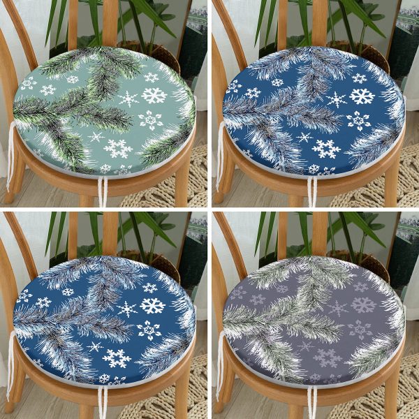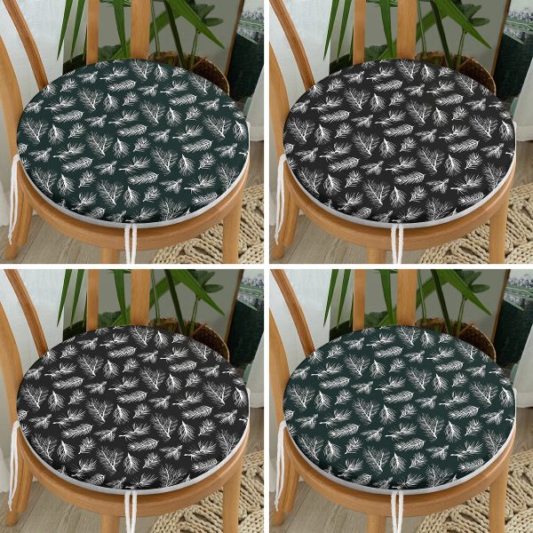 4’lü Yılbaşı Çam Ağacı Özel Tasarımlı Dijital Baskılı Modern Yuvarlak Fermuarlı Sandalye Minderi Seti