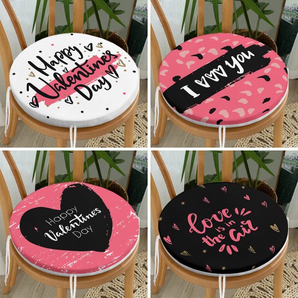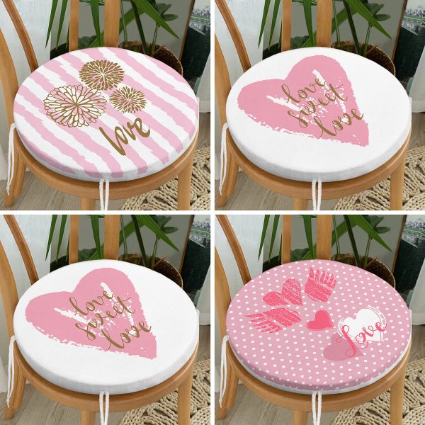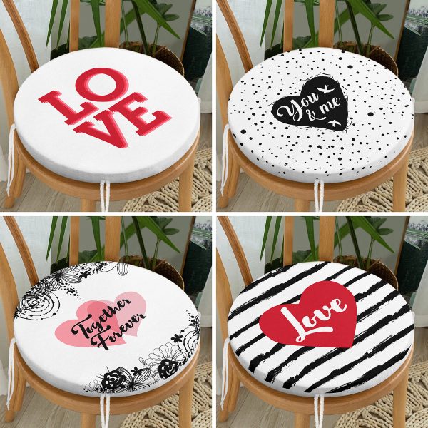 4’lü Sevgililer Günü Konseptli Özel Tasarım Modern Kombin Yuvarlak Fermuarlı Sandalye Minderi Seti