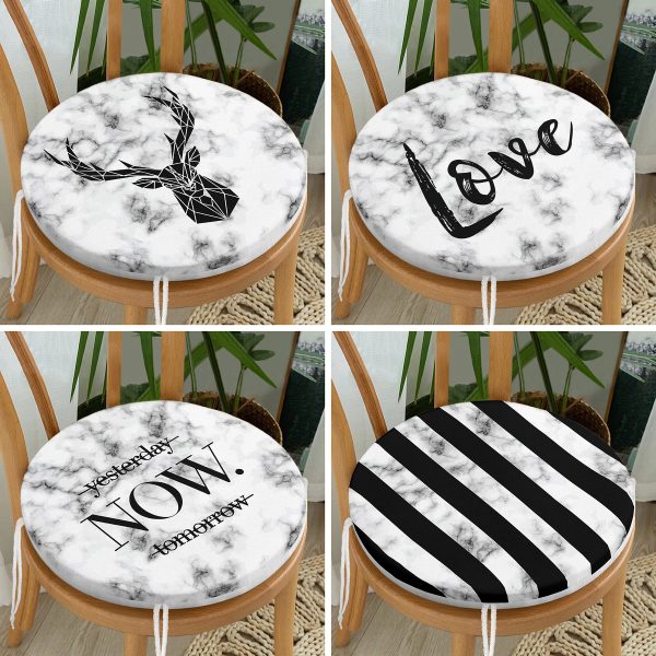 4’lü Mermer Zemin Tasarımlı Dijital Baskılı Yuvarlak Fermuarlı Sandalye Minderi Seti