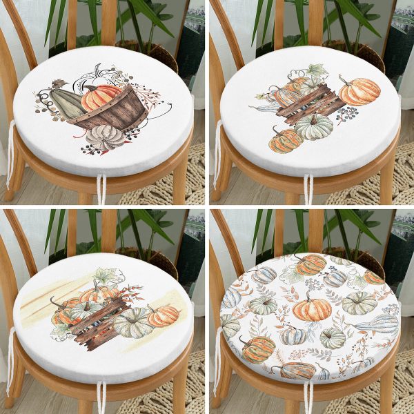 4’lü Kabak Çizimli Özel Tasarım Dijital Baskılı Modern Yuvarlak Fermuarlı Sandalye Minderi Seti