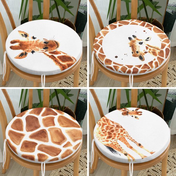 4’lü Özel Çizim Zürafa Tasarımlı Dijital Baskılı Modern Yuvarlak Fermuarlı Sandalye Minderi Seti