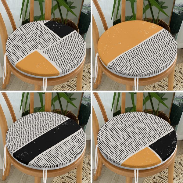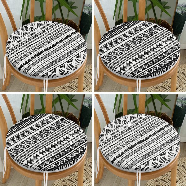 4’lü Çizgili Etnik İskandinav Tasarımlı Dijital Baskılı Modern Yuvarlak Fermuarlı Sandalye Minderi Seti