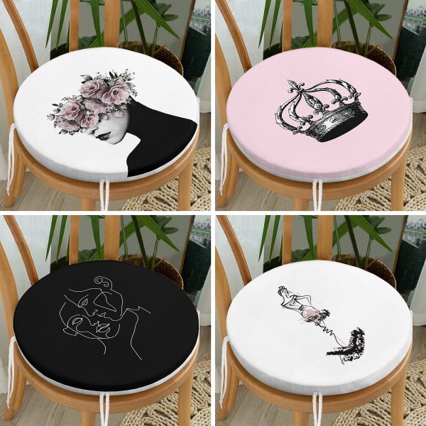 4’lü Özel Tasarım Dijital Baskılı Yuvarlak Fermuarlı Sandalye Minderi Seti