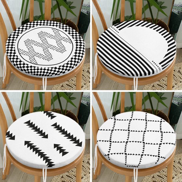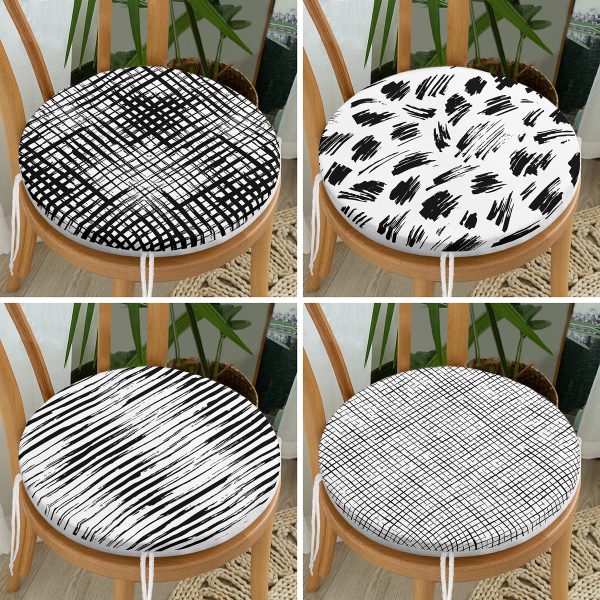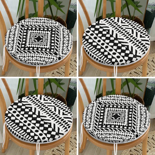 4’lü Siyah Beyaz İskandinav Tasarımlı Yuvarlak Fermuarlı Sandalye Minderi Seti
