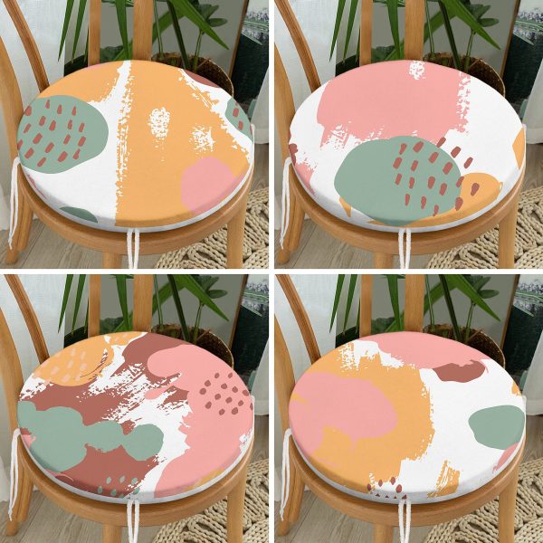 4’lü Modern Yağlı Boya Baskılı Yuvarlak Fermuarlı Sandalye Minderi Seti