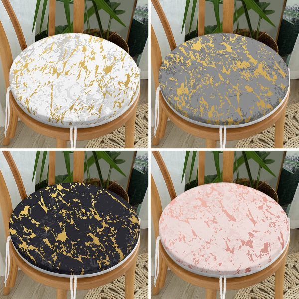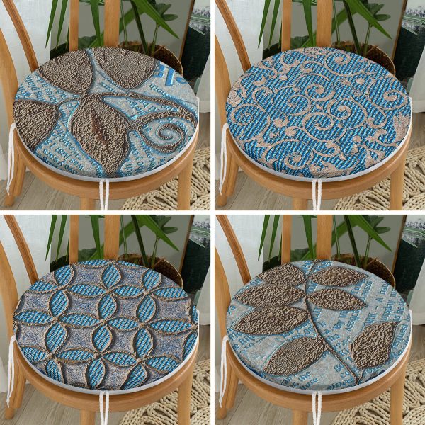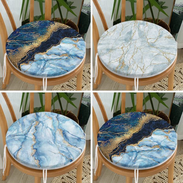 4’lü Mavi Mermer Yuvarlak Fermuarlı Sandalye Minderi Seti