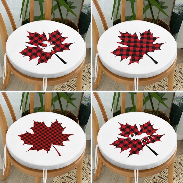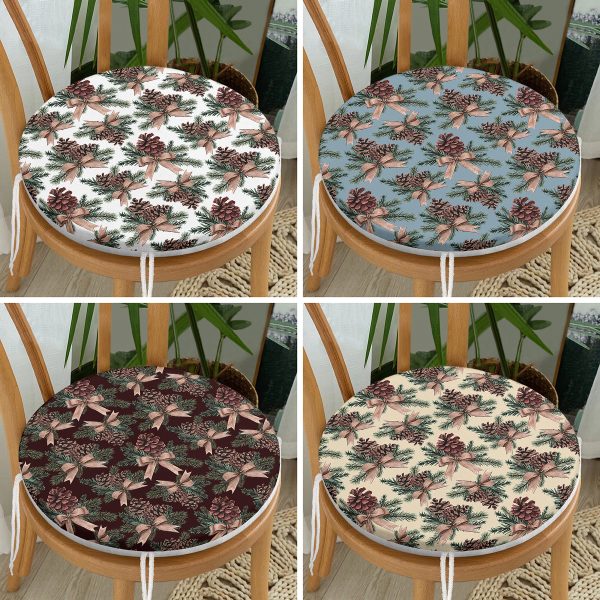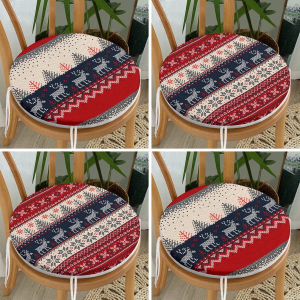 4’lü Geyik Desenli Yılbaşı Temalı Yuvarlak Fermuarlı Sandalye Minderi Seti