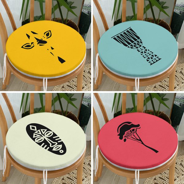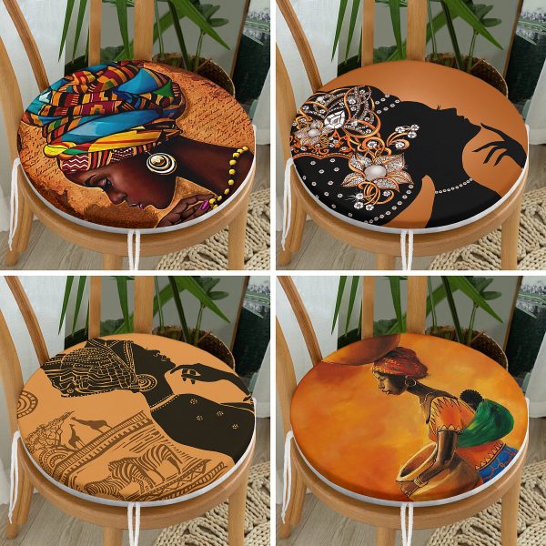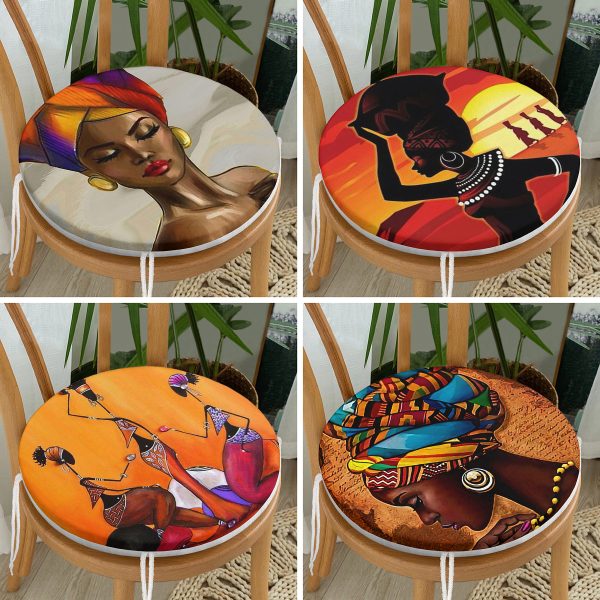 4’lü Afrika Bayan Motifli Yuvarlak Fermuarlı Sandalye Minderi Seti