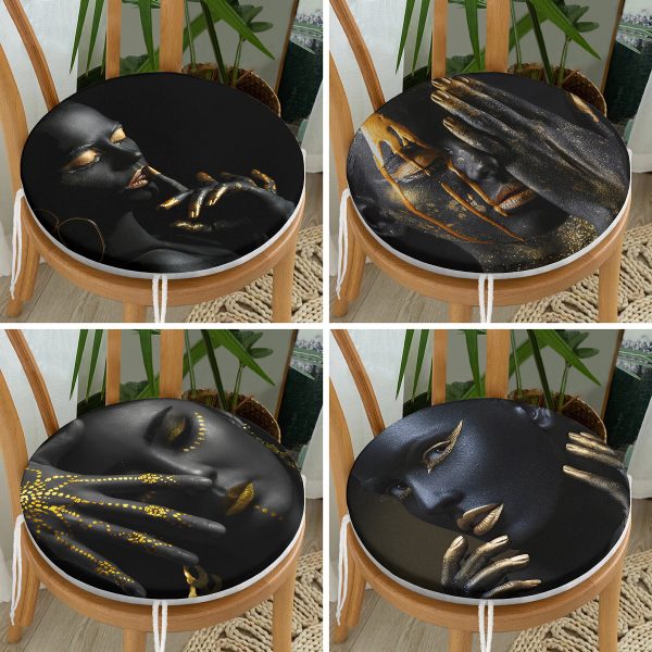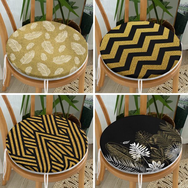 4’lü Gold Detaylı Siyahi Kadınlar Yuvarlak Fermuarlı Sandalye Minderi Seti