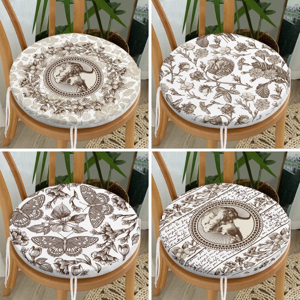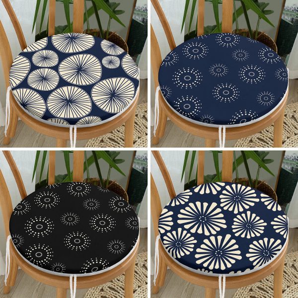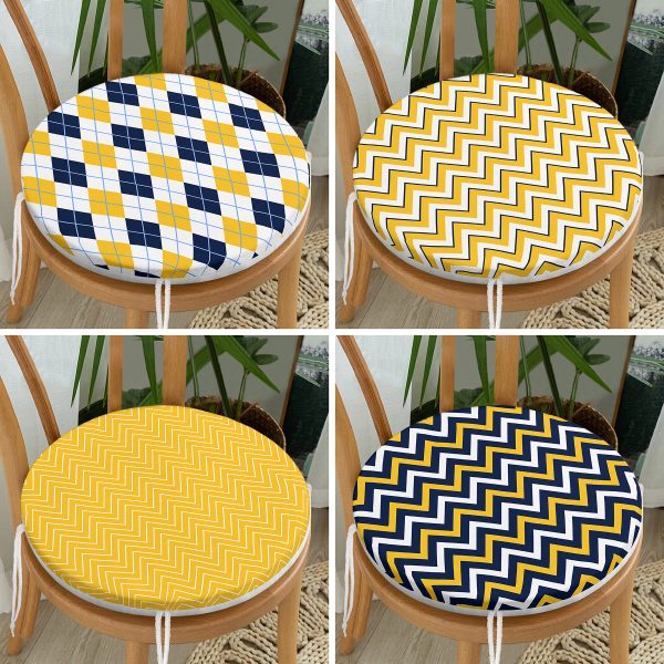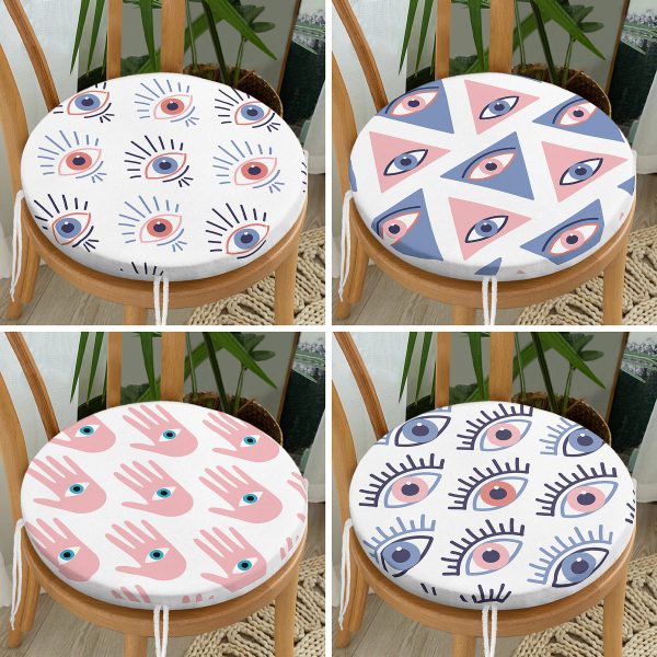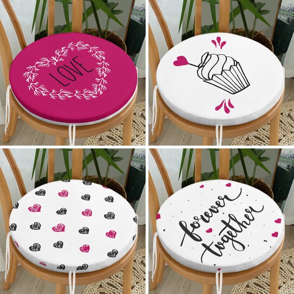 4’lü Özel Tasarım Dijital Baskılı Yuvarlak Fermuarlı Sandalye Minderi Seti