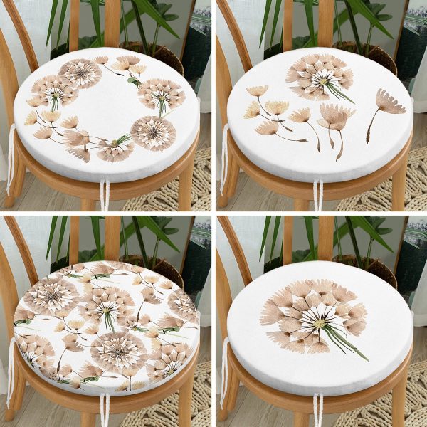 4’lü Beyaz Zemin Üzerinde Çiçek Desenli Modern Yuvarlak Fermuarlı Sandalye Minderi Seti