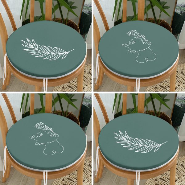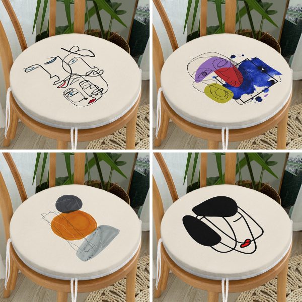 4’lü Renkli One Line Çizimli Dijital Baskılı Yuvarlak Fermuarlı Sandalye Minderi Seti