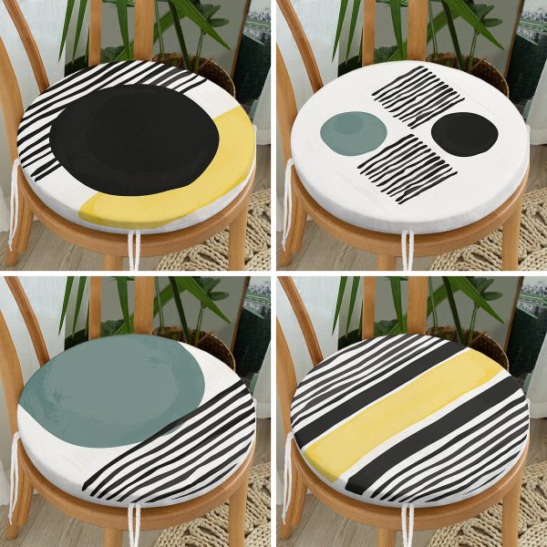 4’lü Renkli Zemin Üzerinde Onedraw Çizimli Modern Yuvarlak Fermuarlı Sandalye Minderi Seti