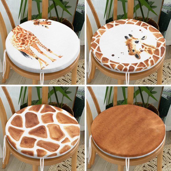 4’lü Zürafa Motifli Dijital Baskılı Yuvarlak Fermuarlı Sandalye Minderi Seti