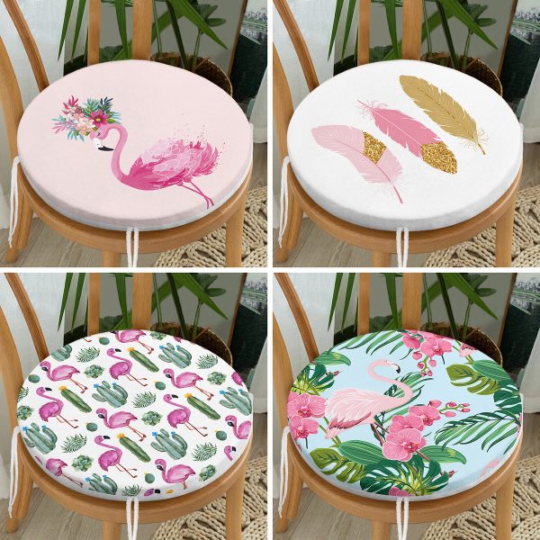 4’lü Flamingo Tasarımlı Renkli Dijital Baskılı Yuvarlak Fermuarlı Sandalye Minderi Seti