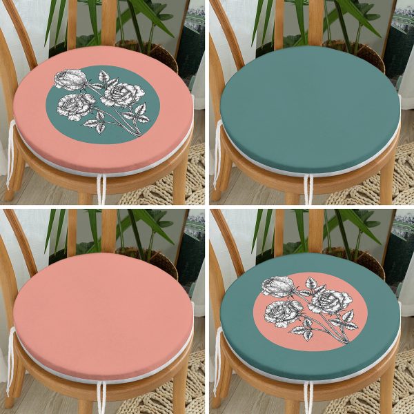 4’lü Renkli Karakalem Çiçek Motifli Yuvarlak Fermuarlı Sandalye Minderi Seti