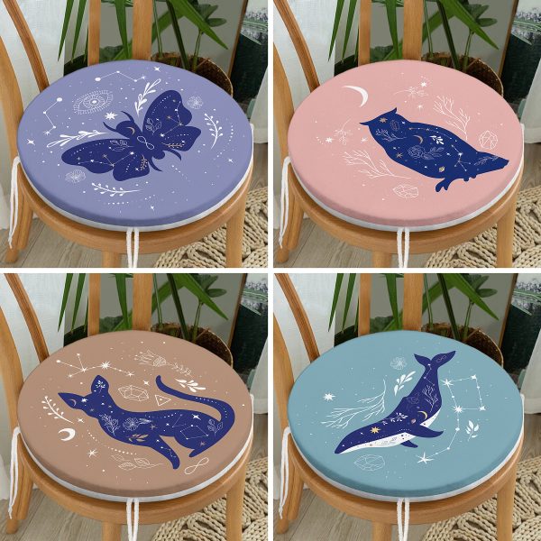 4’lü Soyut Sevimli Hayvan Baskılı Yuvarlak Fermuarlı Sandalye Minderi Seti
