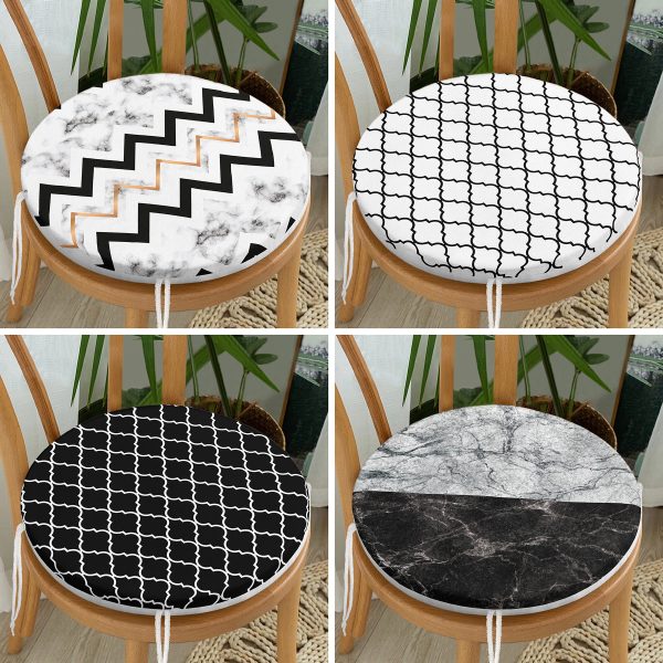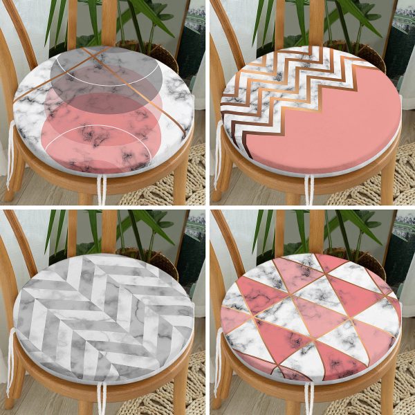 4’lü Mermer Tasarımlı Geometrik Motifli Yuvarlak Fermuarlı Sandalye Minderi Seti