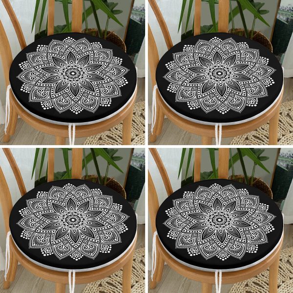 4’lü Mandala Desen Tasarımlı Dijital Baskılı Yuvarlak Fermuarlı Sandalye Minderi Seti