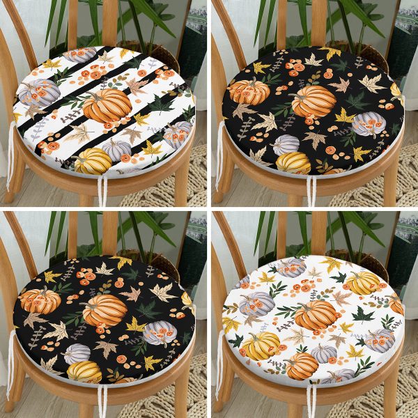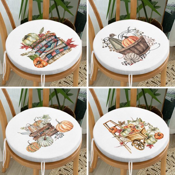 4’lü Kabak Motifli Dijital Baskılı Yuvarlak Fermuarlı Sandalye Minderi Seti