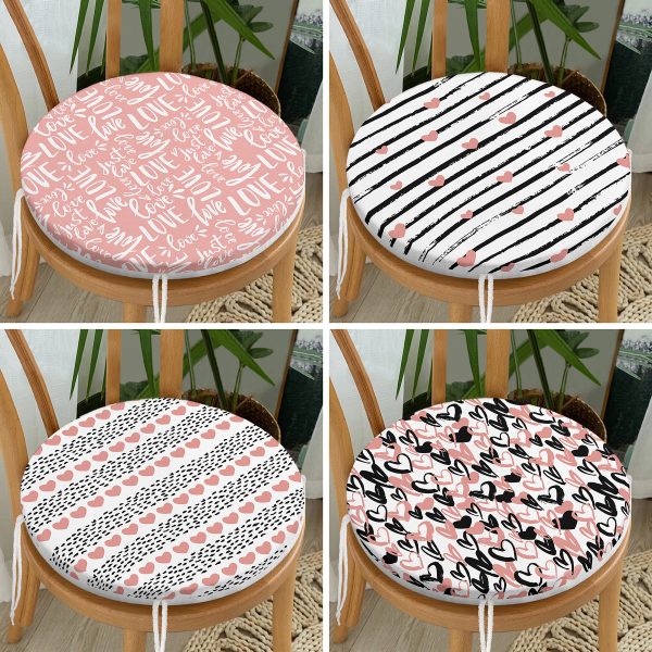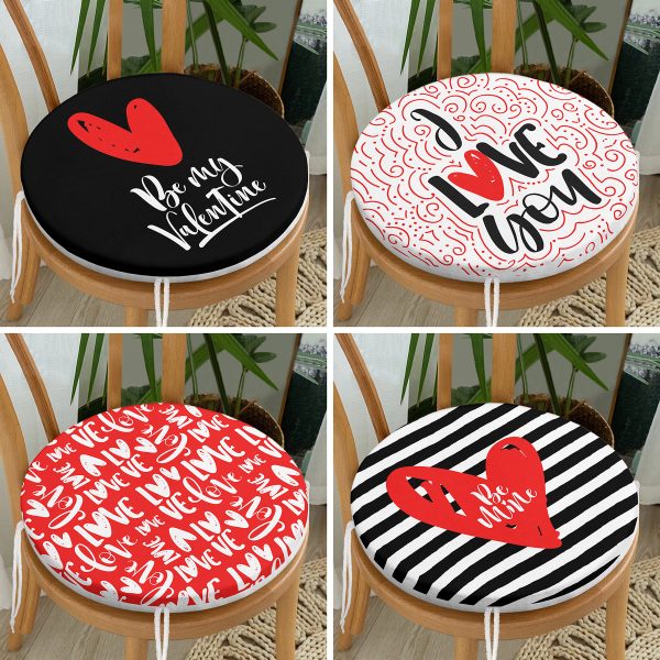 4’lü Sevgililer Günü Konseptli Özel Tasarım Modern Kombin Yuvarlak Fermuarlı Sandalye Minderi Seti