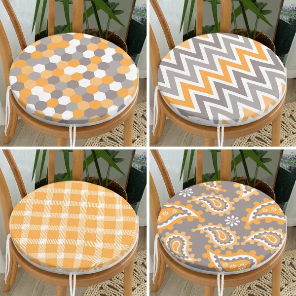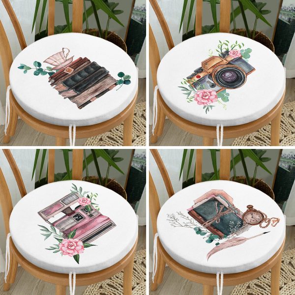 4’lü Dijital Baskılı Dekoratif Yuvarlak Fermuarlı Sandalye Minderi Seti