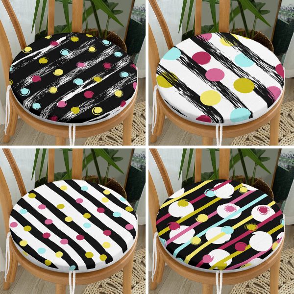 4’lü Renkli Puantiye Motifli Dijital Baskılı Modern Yuvarlak Fermuarlı Sandalye Minderi Seti