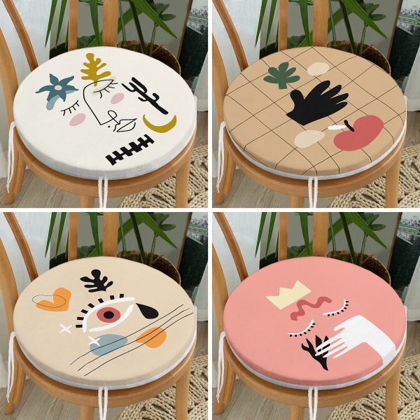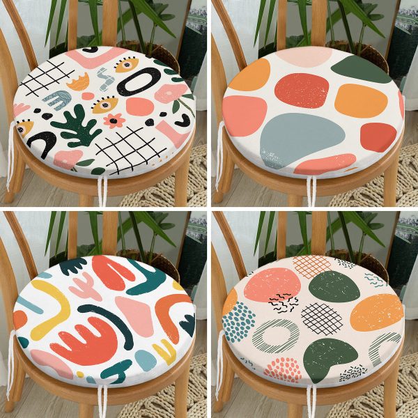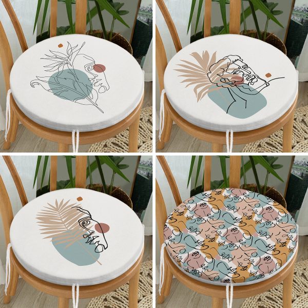 4’lü Soyut Çizimli Pastel Renkli Özel Tasarım Dijital Baskılı Modern Yuvarlak Fermuarlı Sandalye Minderi Seti