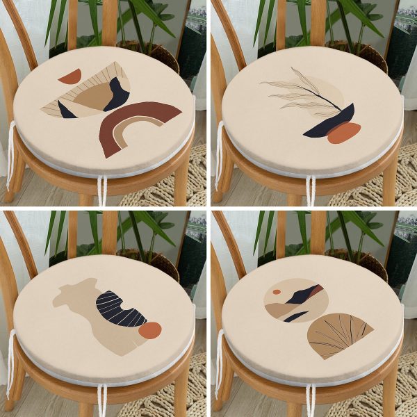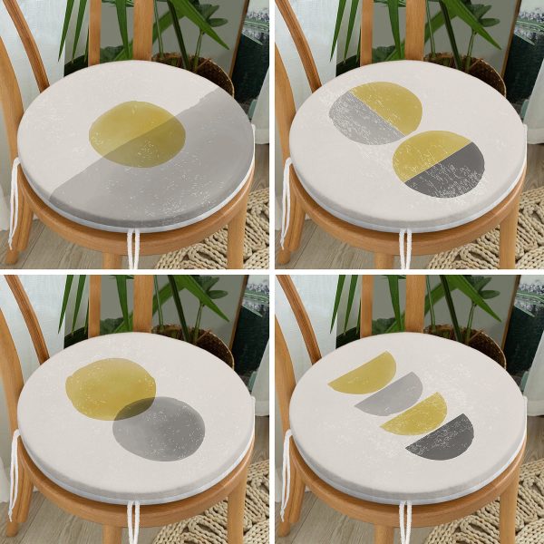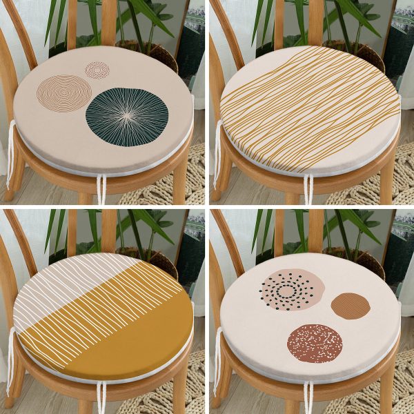 4’lü Soyut Desenli Özel Tasarımlı Yuvarlak Fermuarlı Sandalye Minderi Seti