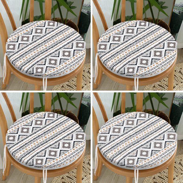 4’lü Minimal Motifli Bohem Tasarımlı Yuvarlak Fermuarlı Sandalye Minderi Seti