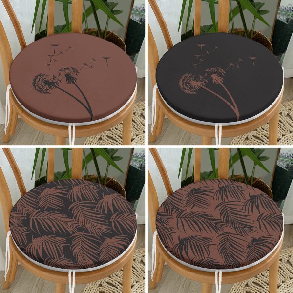 4’lü Kurumuş Tropik Yaprak Tasarımlı Dijital Baskılı Modern Yuvarlak Fermuarlı Sandalye Minderi Seti