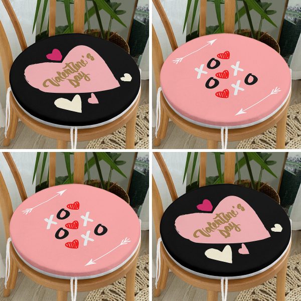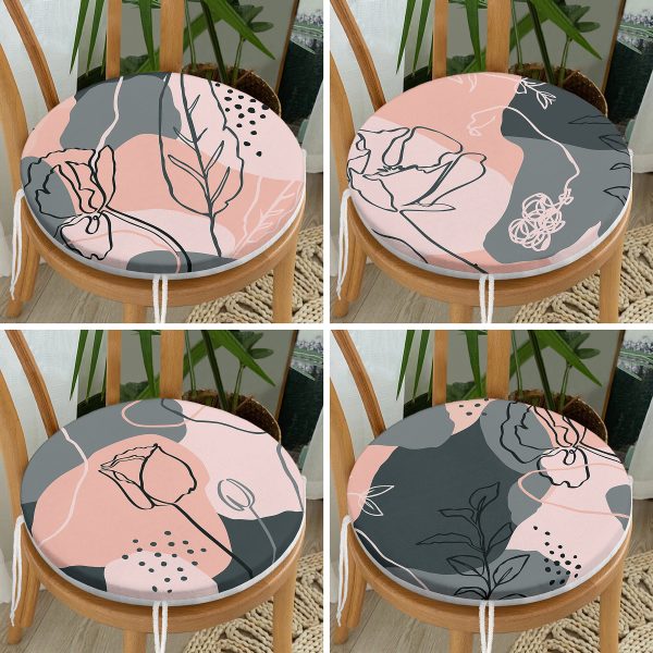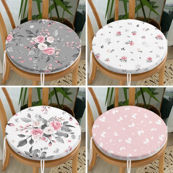 4’lü Gül Motifli Konsept Modern Yuvarlak Fermuarlı Sandalye Minderi Seti