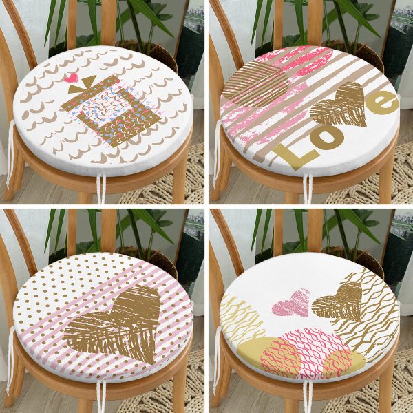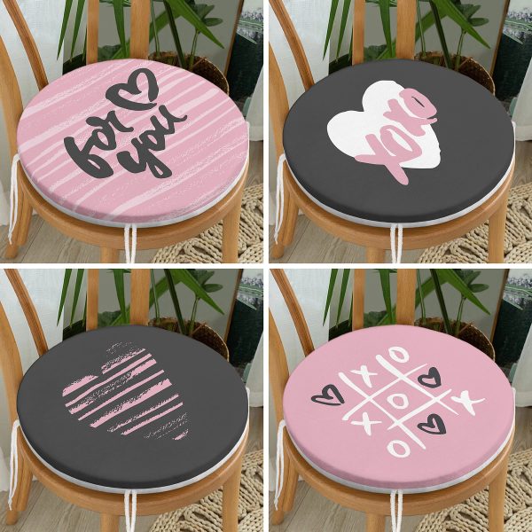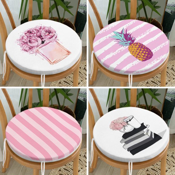 4’lü Pembe Beyaz Çizgili Konsept Desenli Yuvarlak Fermuarlı Sandalye Minderi Seti