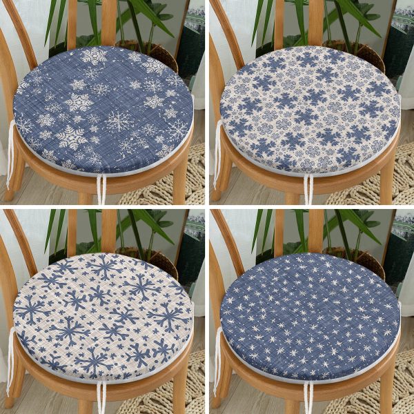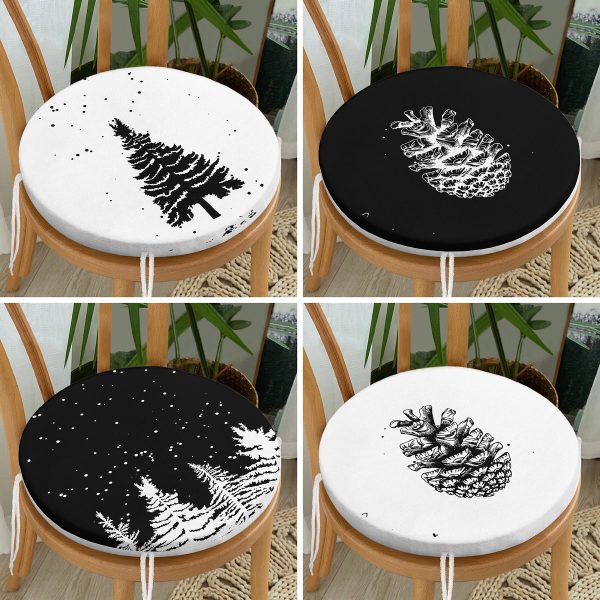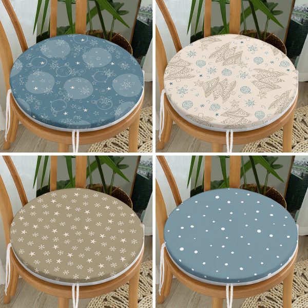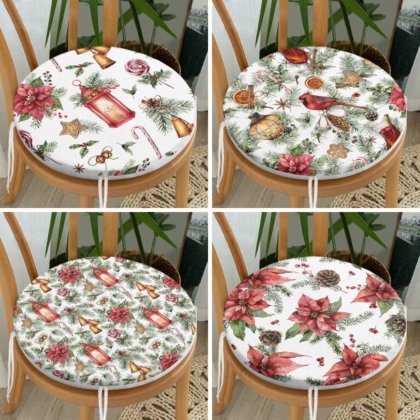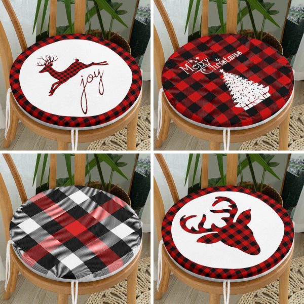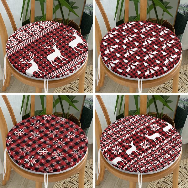 4’lü Yılbaşı Temalı Ekoseli Yuvarlak Fermuarlı Sandalye Minderi Seti