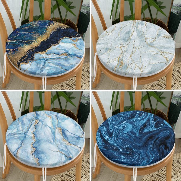 4’lü Mavi Mermer Yuvarlak Fermuarlı Sandalye Minderi Seti