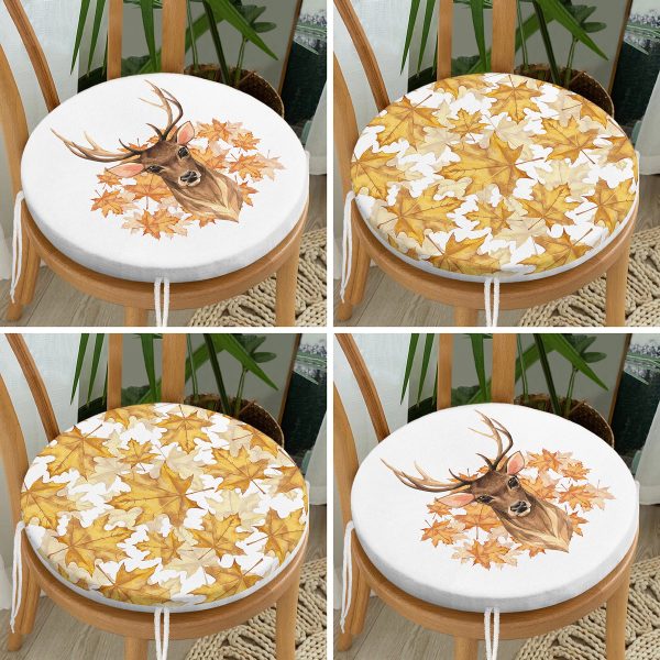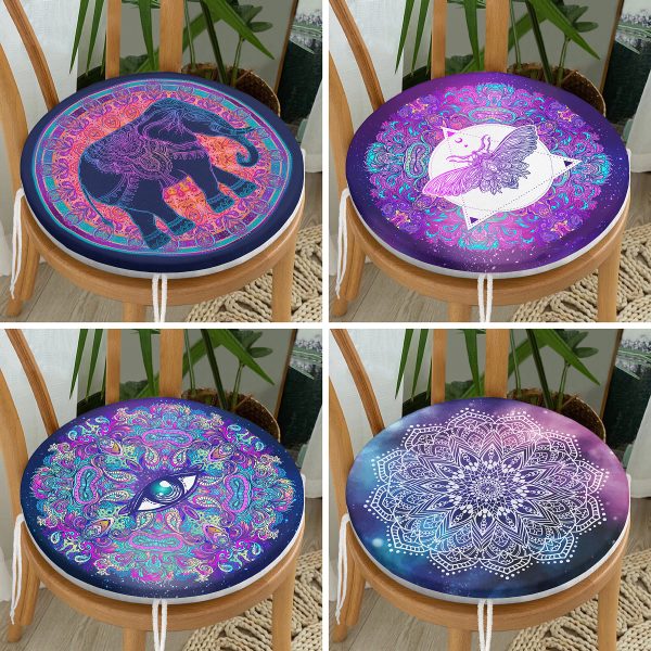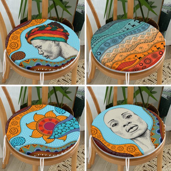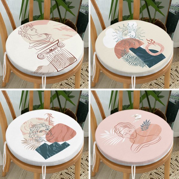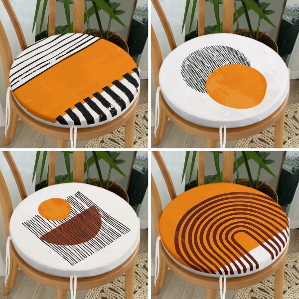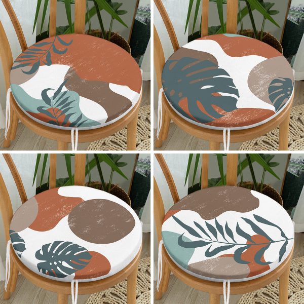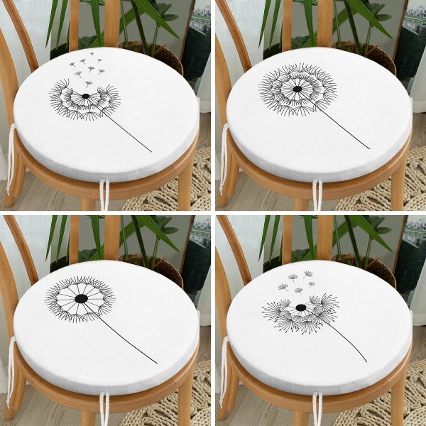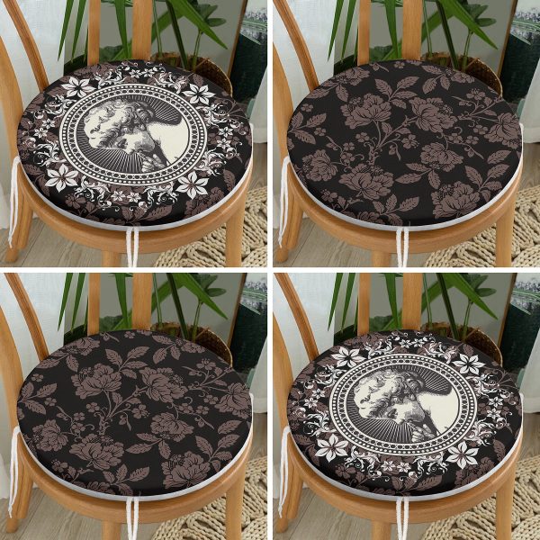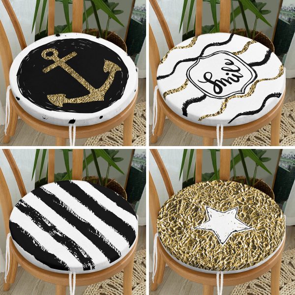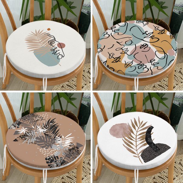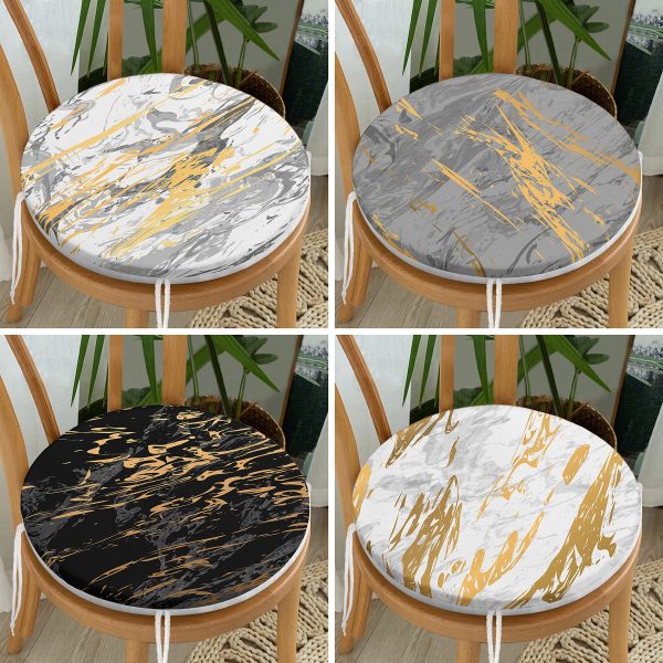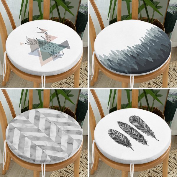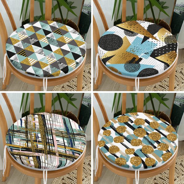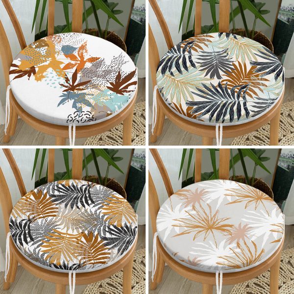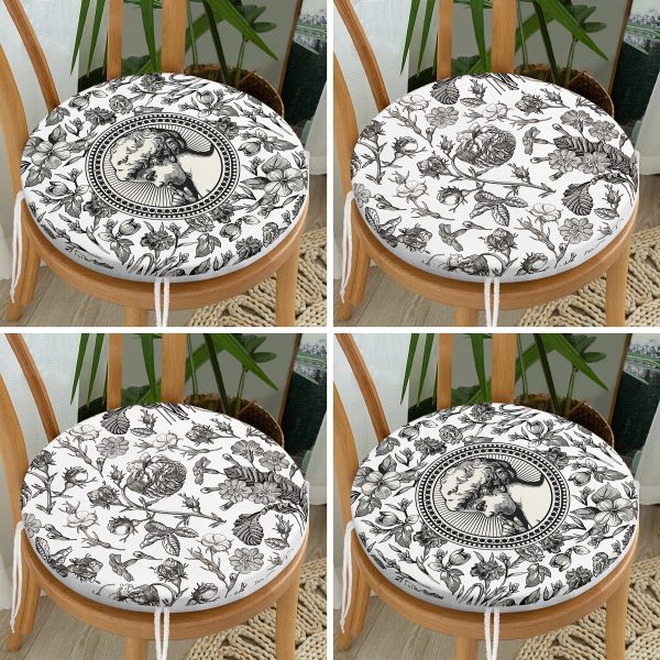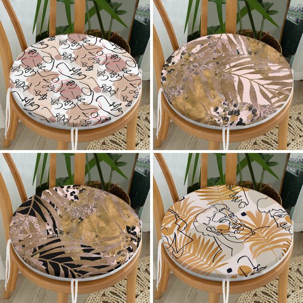 4’lü Dijital Baskılı Dekoratif Yuvarlak Fermuarlı Sandalye Minderi Seti
